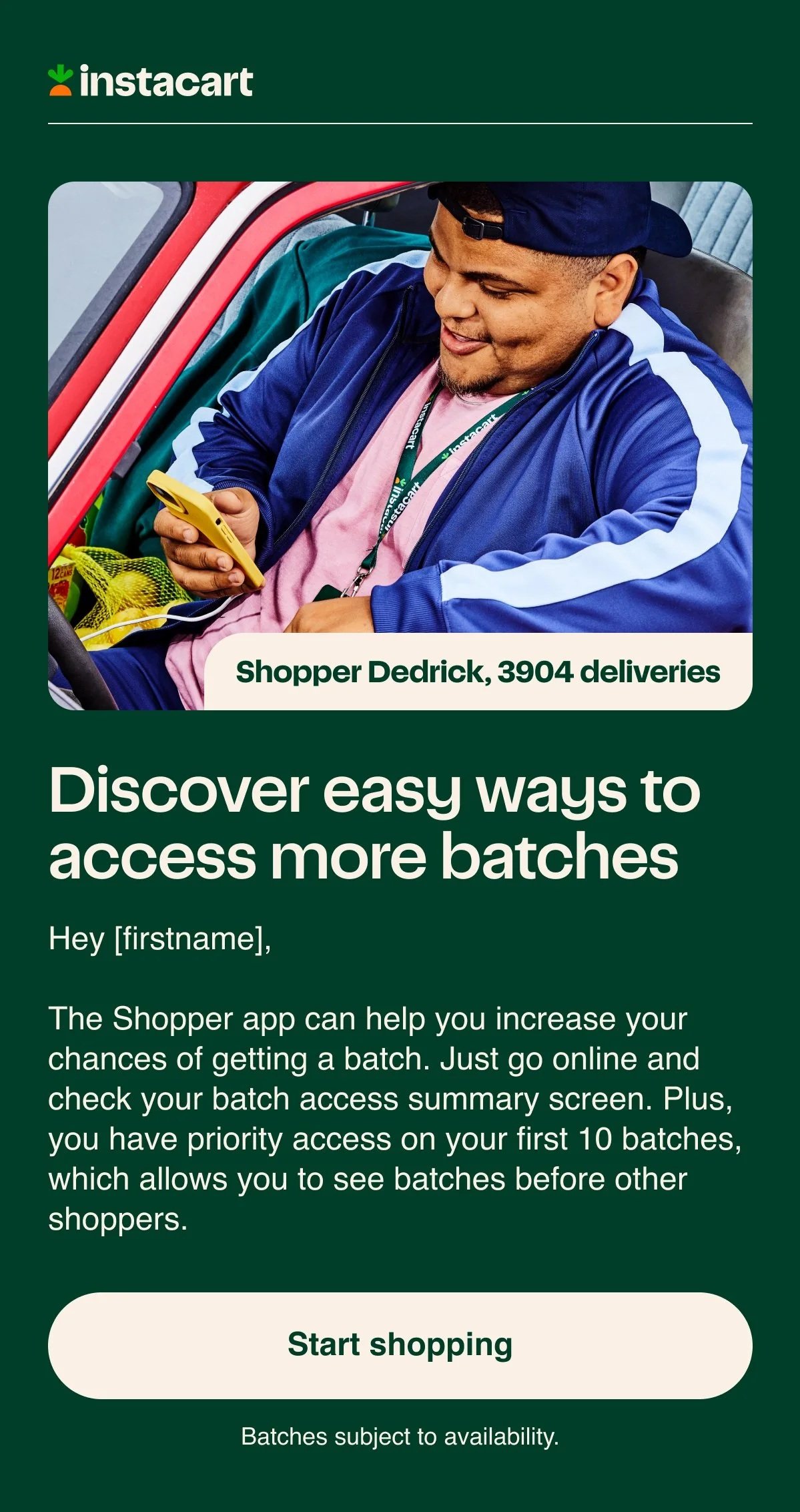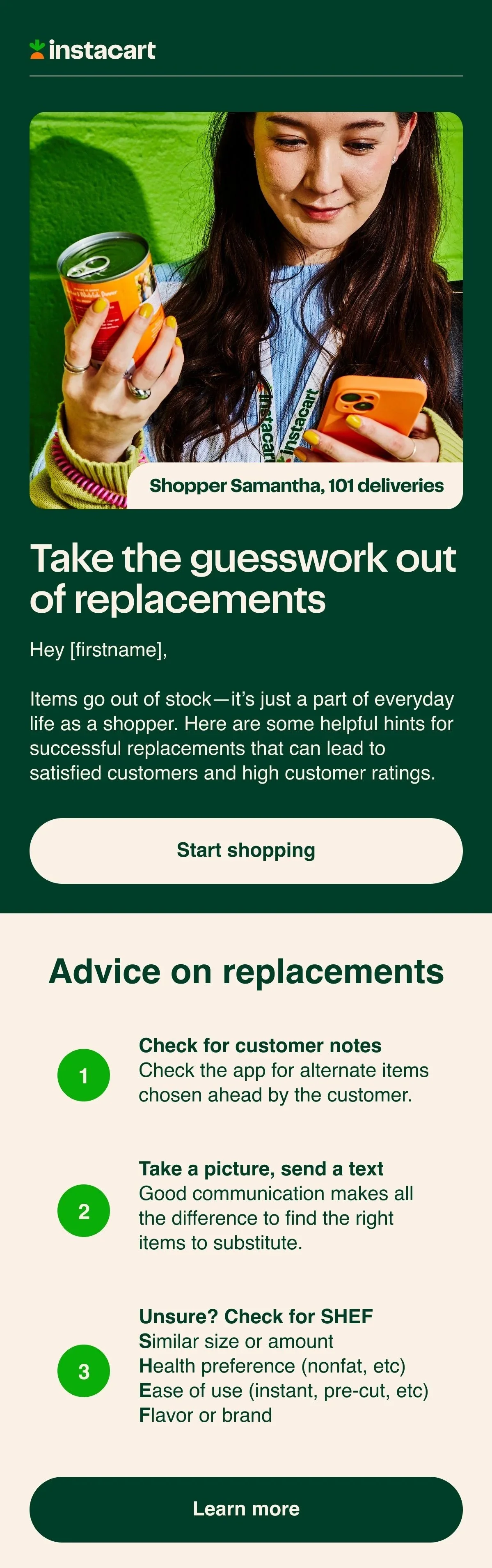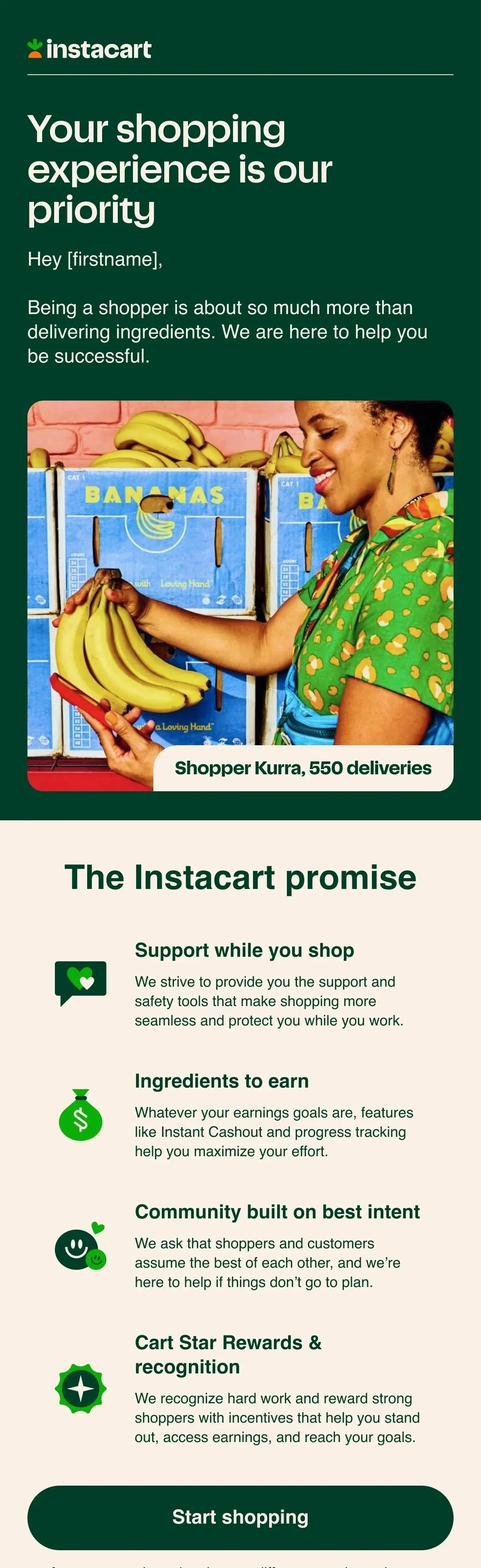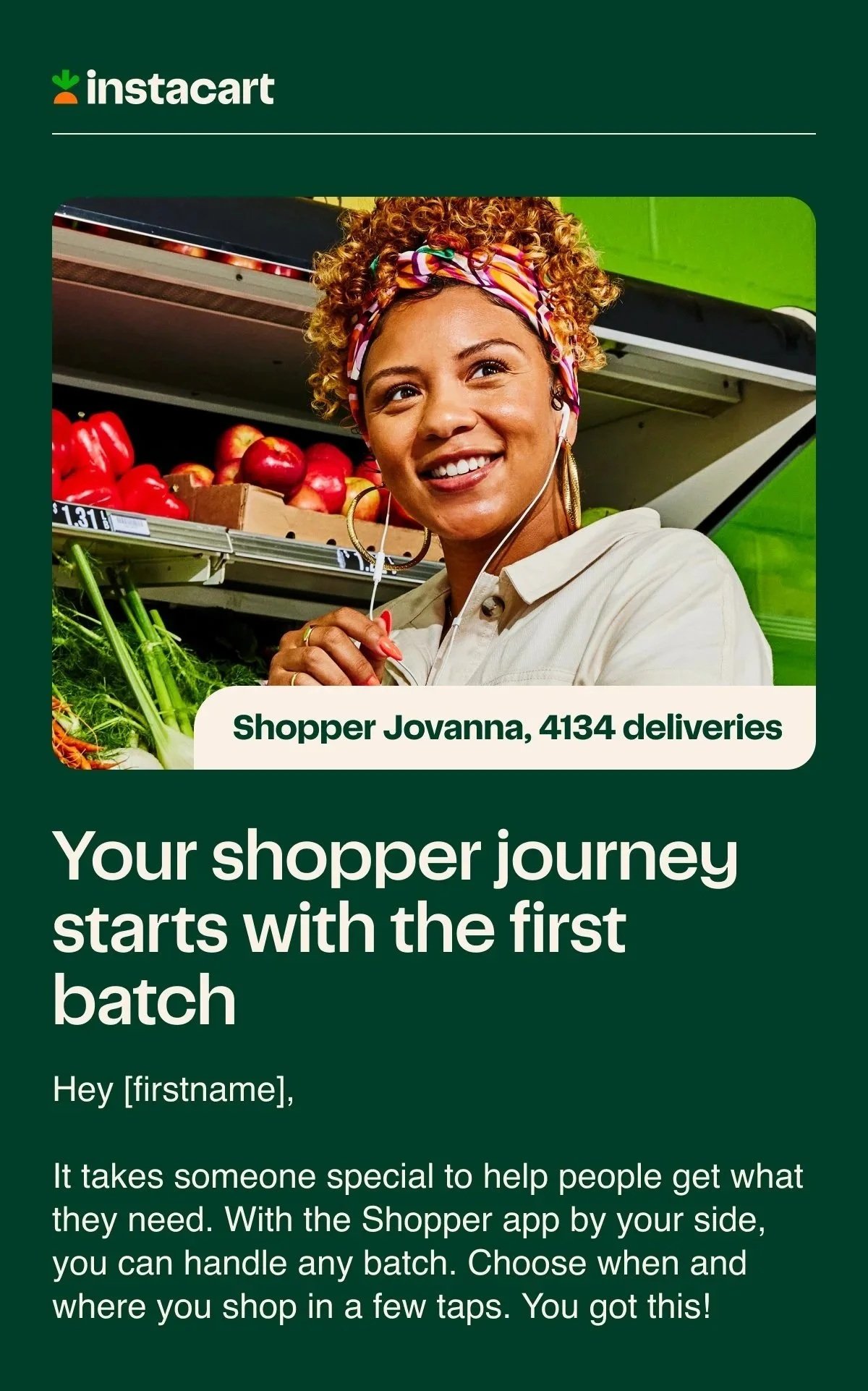 ❋ The ChallengeInstacart’s new shopper onboarding flow had grown into a long sequence of text-heavy emails that overwhelmed users and reduced activation.