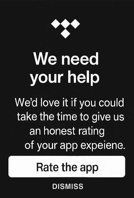 TIDAL’s in-app rating prompt wasn’t converting, despite new product improvements. My brief: increase engagement using copy alone. I reframed the message around TIDAL’s strongest equity—its connection to Jay-Z and Beyoncé—and used a lyric reference to deliver a moment of delight at exactly the right touchpoint. The updated message drove a 300% increase in app ratings, proving that playful, relevant language can move real numbers.